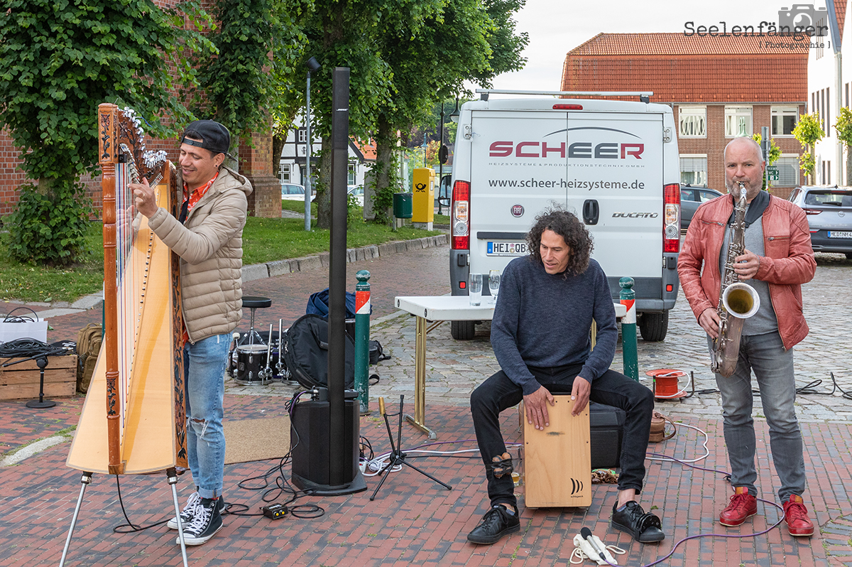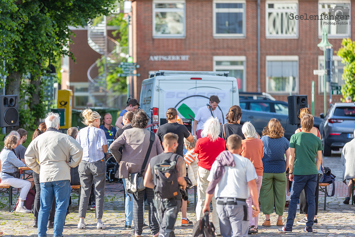Nach zwei Wochen Wartezeit gastierte der Meldorfer Kulturbonsche vor dem Hotel zur Linde im Zentrum der Stadt.